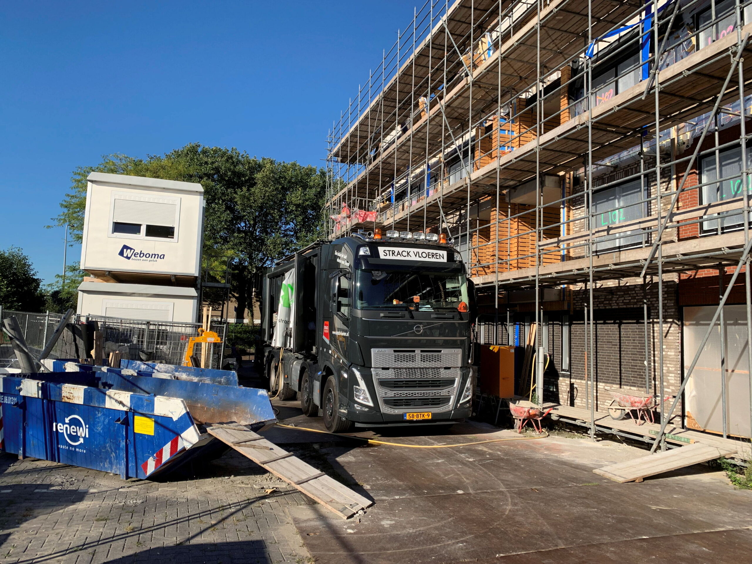 Vandaag worden de vloeren op de begane grond gestort. Dit wordt met de hand uitgevlakt.
