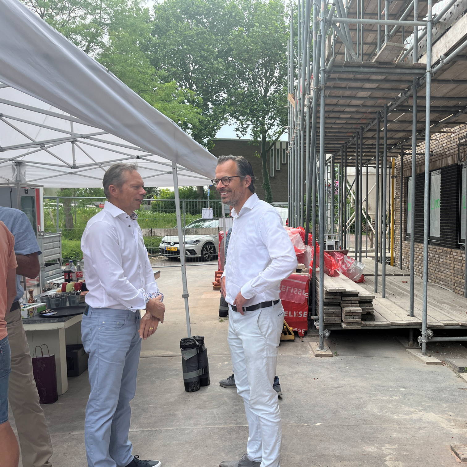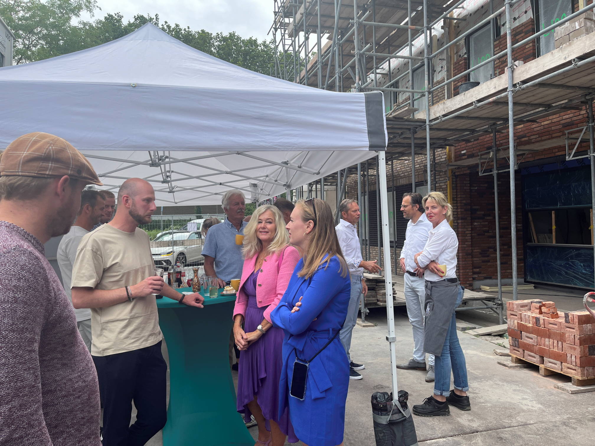 Wat was het gezellig op 14 juli om samen met de huurders en kopers onder het genot van een hapje en een drankje samen de eerste steen te vieren!